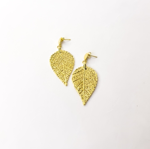 Brinco feito com a folha do cerrado banhada a ouro 18k através de um processo de produção artesanal e sustentável.