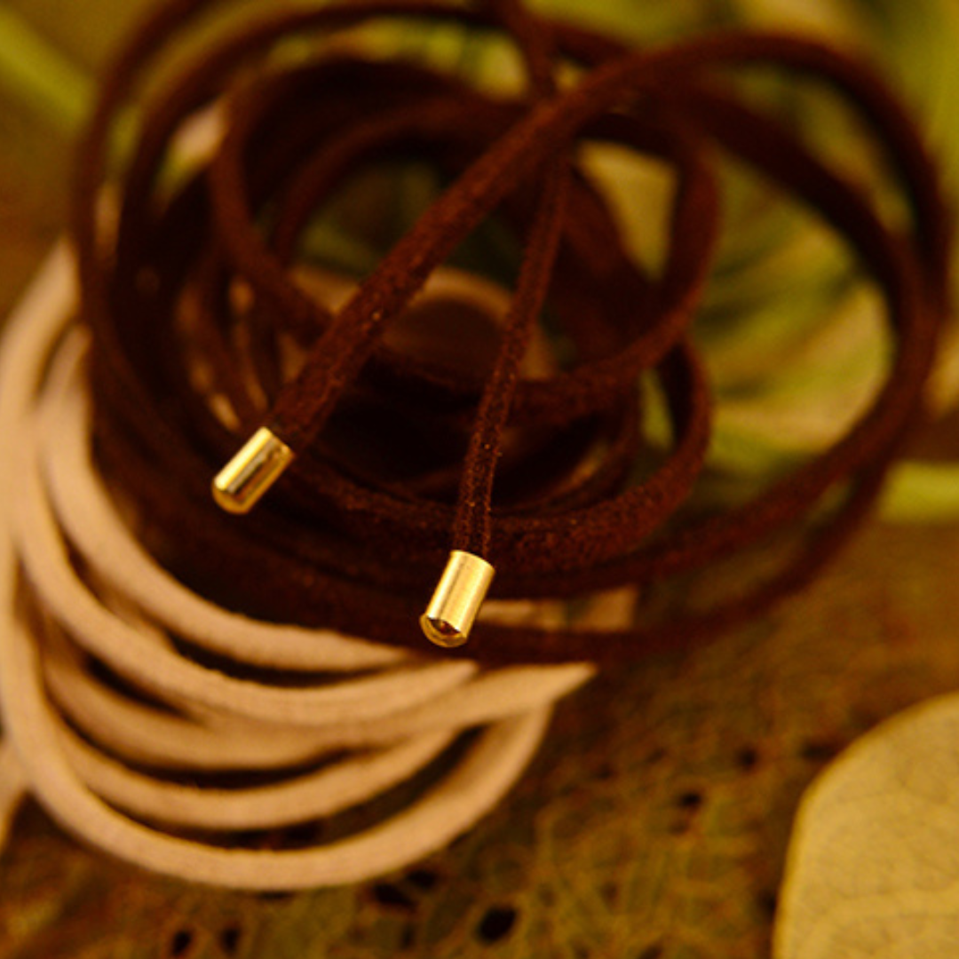 Fio para cordão de chamois, com ponteira banhada a ouro ou ródio branco.