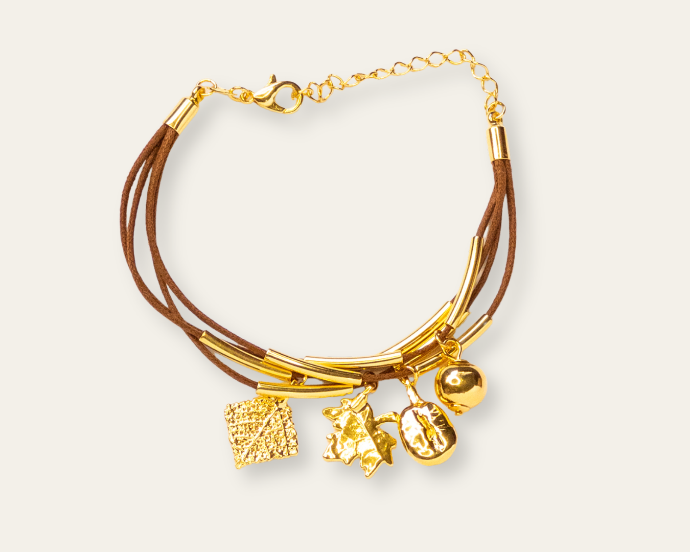 Pulseira Folhinhas e Sementes, com canutilhos que trazem leveza, estilo e movimento para o seu look.