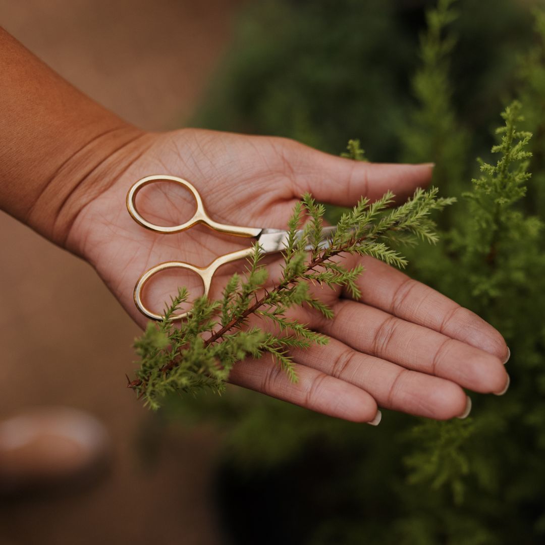 A coleta das folhas é feita de duas maneiras: em parceria com catadores que as recolhem da natureza apenas no tempo adequado (mais precisamente, uma vez por ano) ou diretamente do jardim que cultivamos com afeto na nossa fábrica.