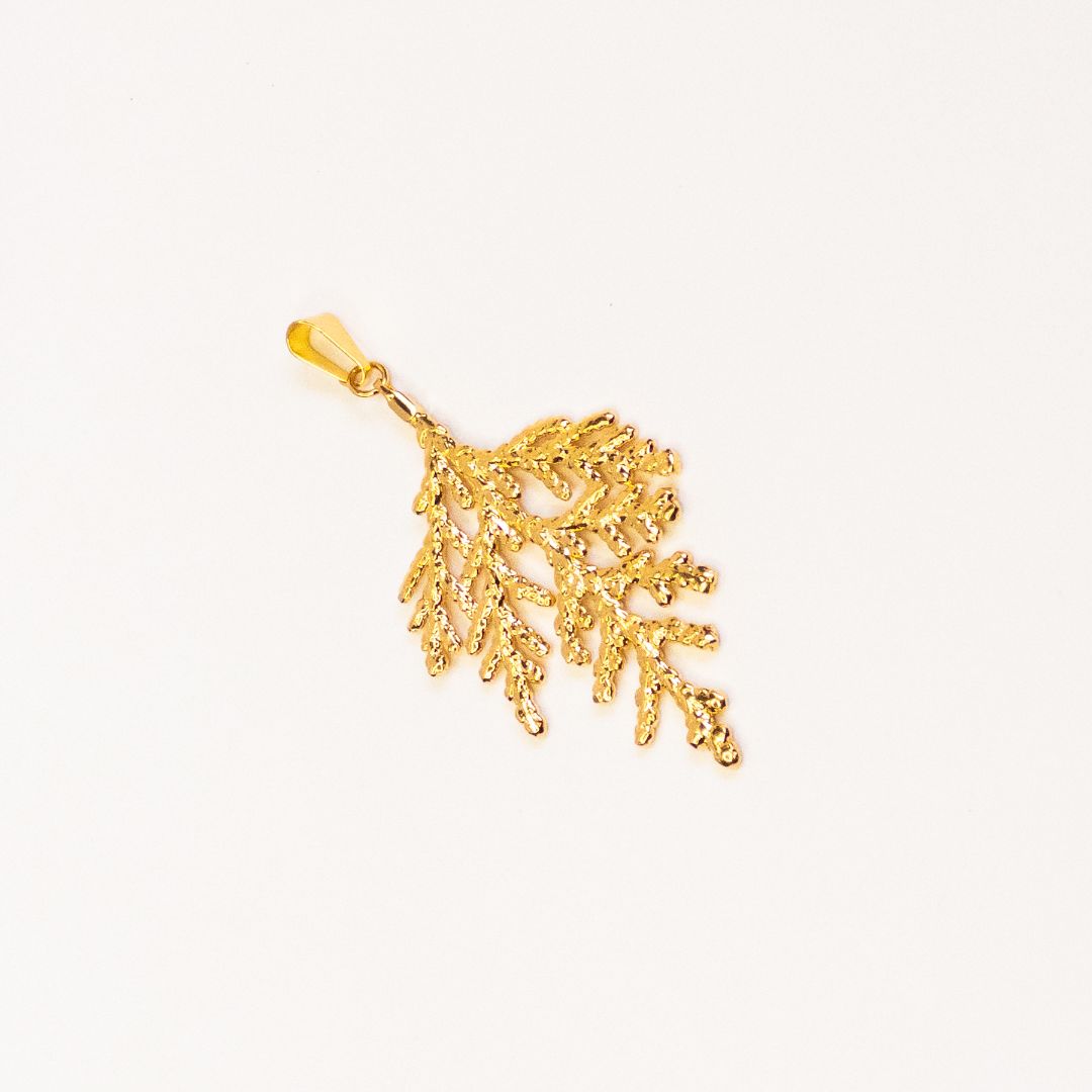 O Pingente Folha Tuia P captura a essência mais delicada da Tuia (Platycladus orientalis). Pequeno, poético e cheio de detalhes naturais, ele representa a sutileza da natureza traduzida em joia.